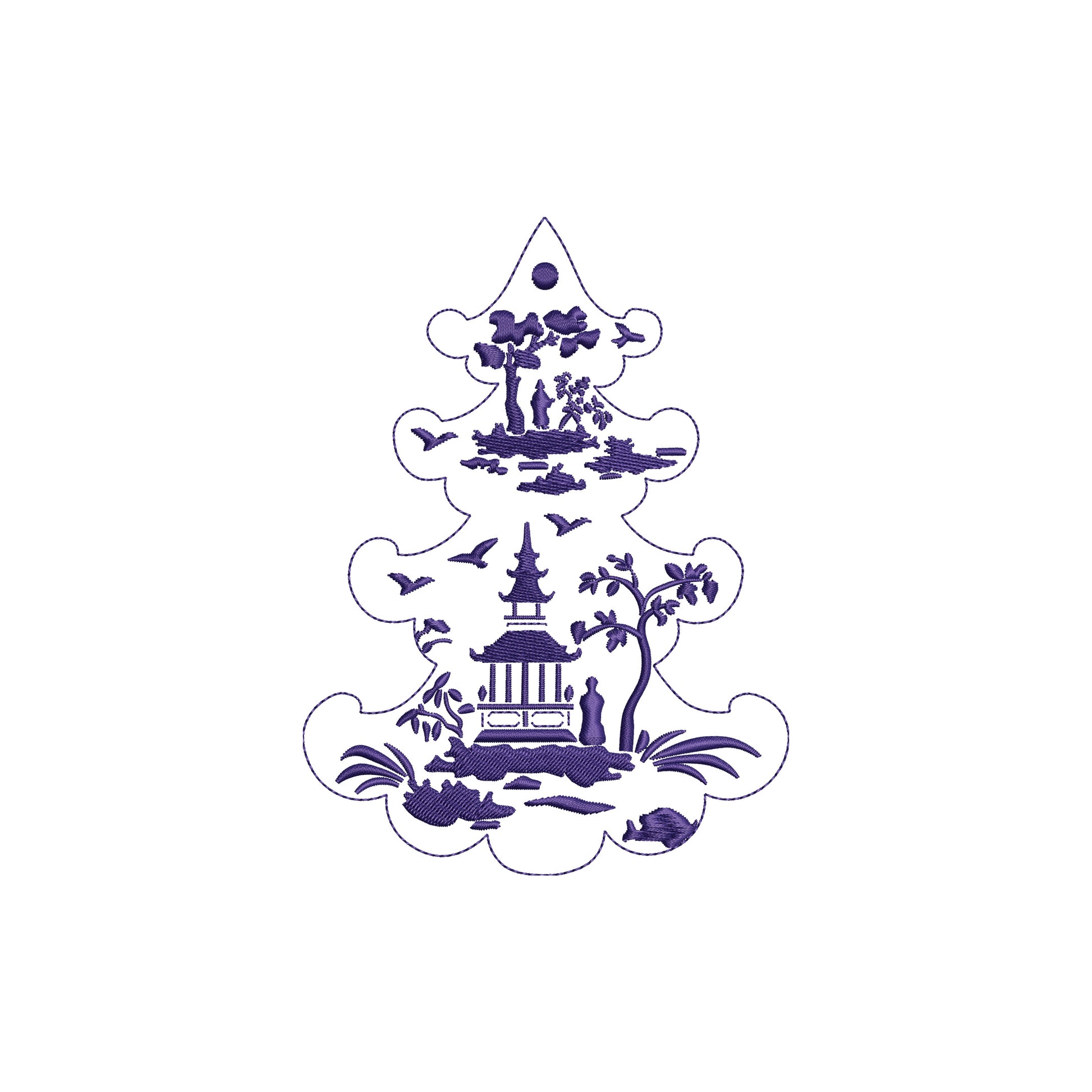 Chinoiserie Print Christmas Tree Digital Machine Embroidery File- 4 SIZES