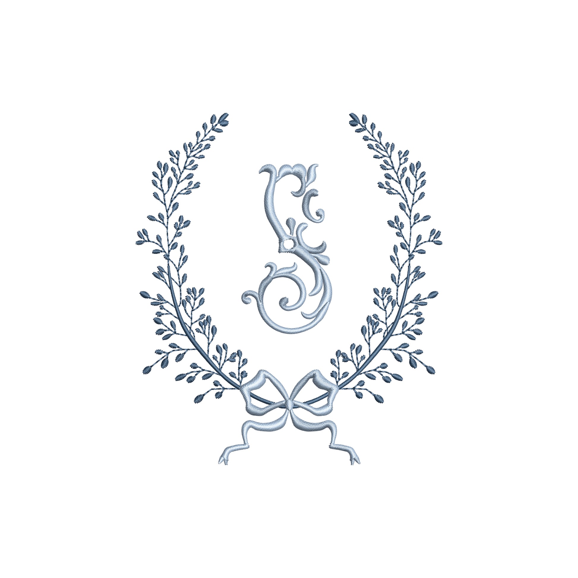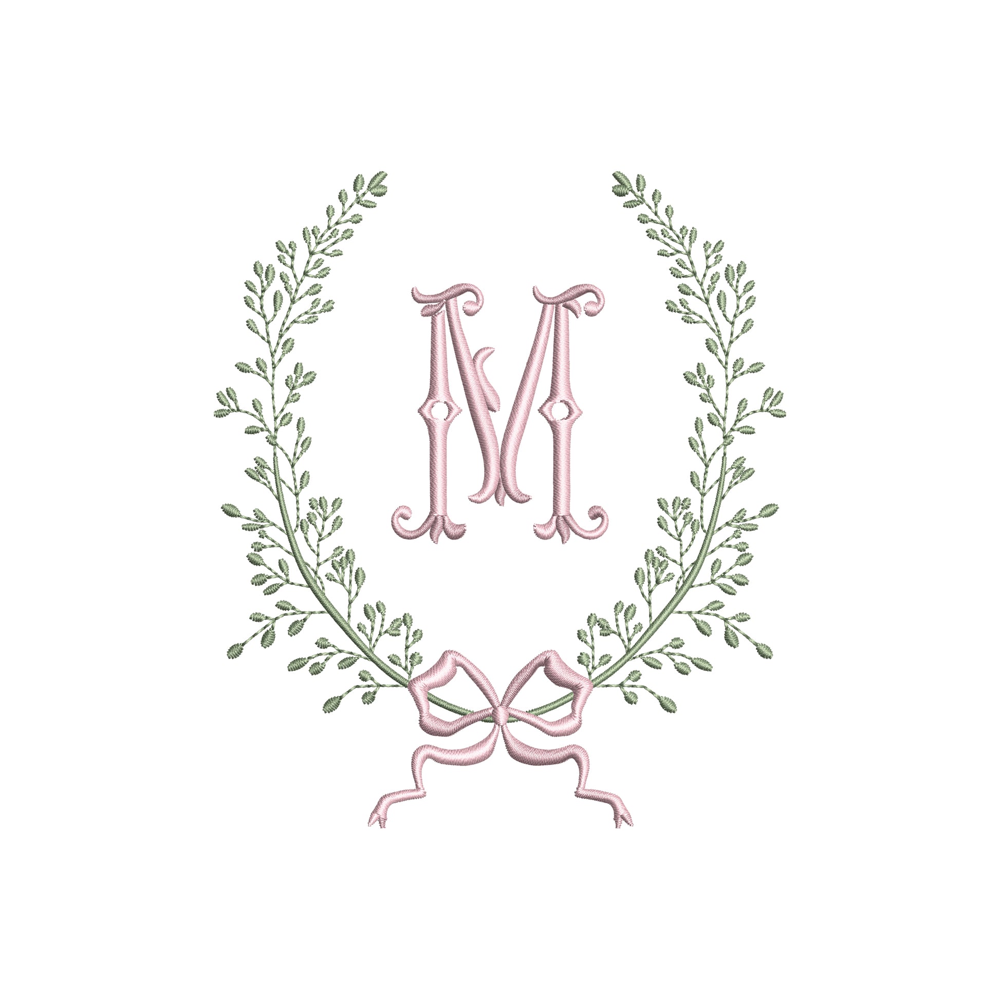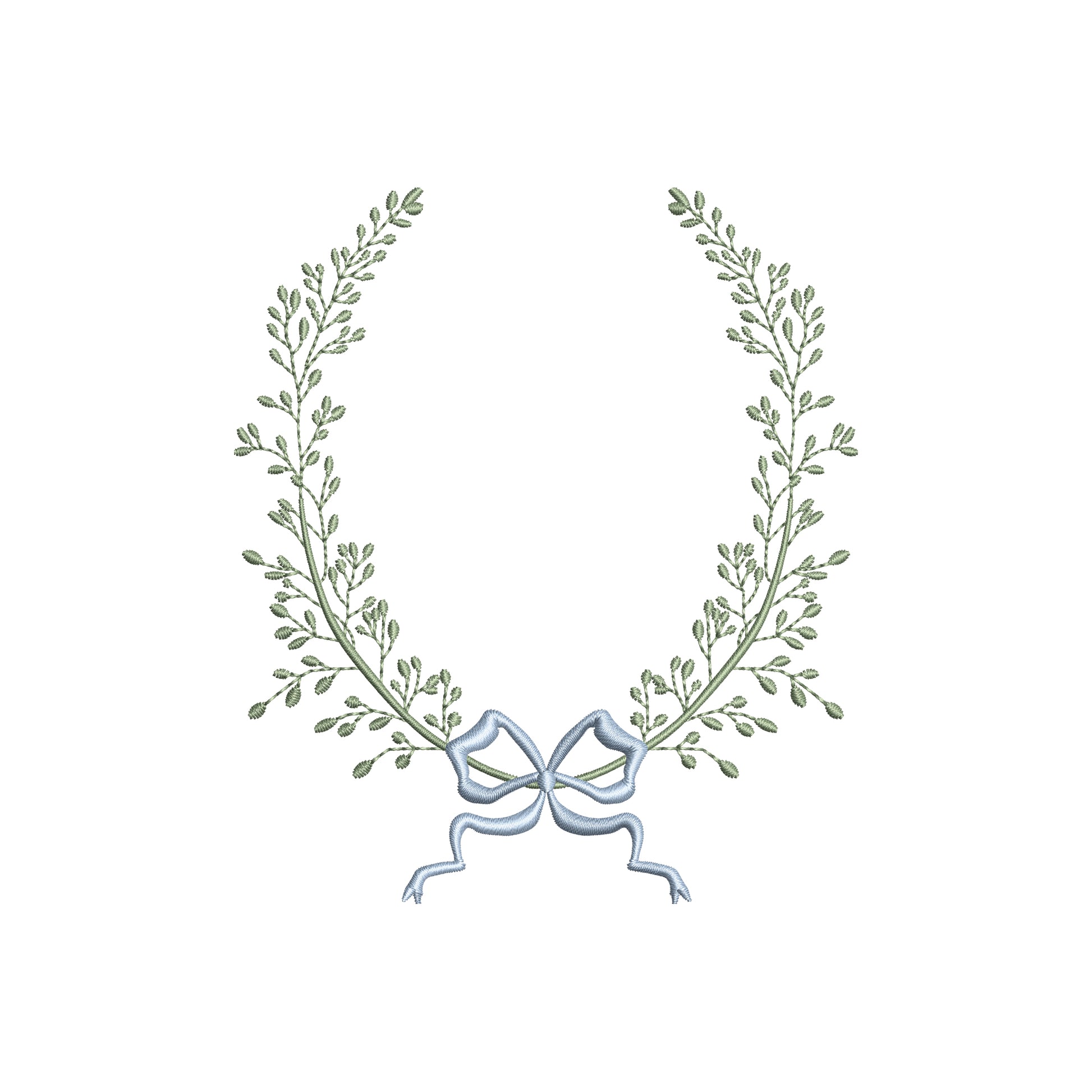 Vintage Monogram Frame Leaf Wreath with Flowy Bow Digital Machine Embroidery File- Download-5 SIZES
