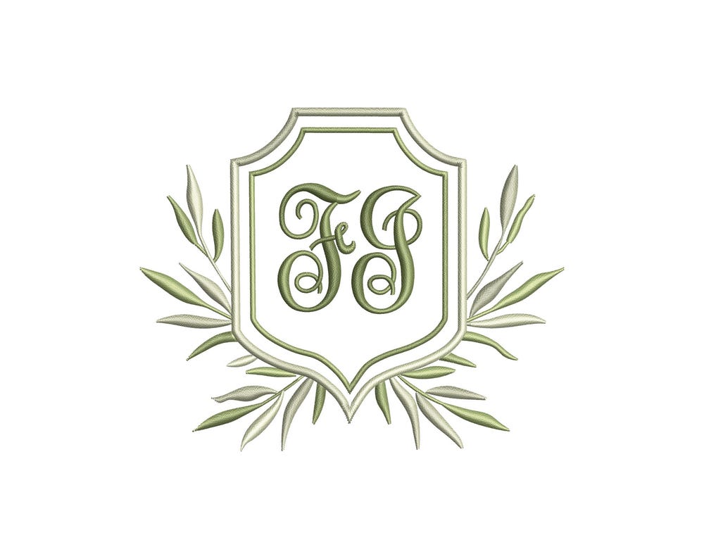 Monogram Frame Leaf Wreath with Flowy Bow Digital Machine Embroidery File- Download- 5 SIZES